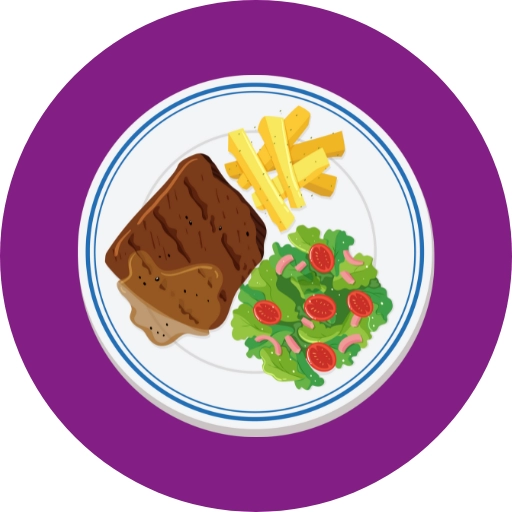 Arroz integral, coração bovino, músculo bovino, cenoura, chuchu, batata inglesa e fígado bovino.