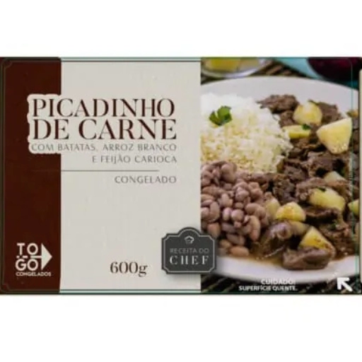 Arroz integral, coração bovino, músculo bovino, cenoura, chuchu, batata inglesa e fígado bovino